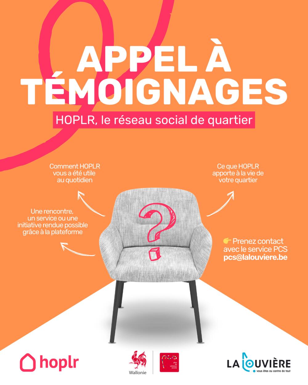 Dans le cadre de la promotion de Hoplr, la Ville lance un appel à témoignages afin de valoriser les usages concrets de la plateforme et d'encourager davantage de citoyennes et citoyens à rejoindre le réseau.